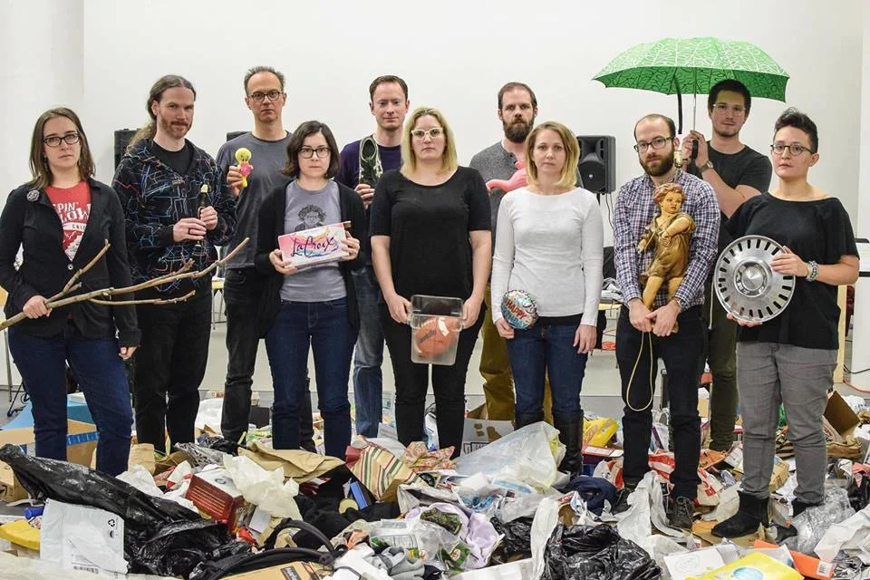 Using absurdity, humor, and non-narrativity to redefine notions of music and memory,Time With People is an hour-long music and theatre work by British composer Tim Parkinson (b. 1973). As Parkinson writes, “TIME WITH PEOPLE, an opera in seven scenes, for ten people and assorted objects, redefines fundamentals of opera from its 16th century origins . . . reconceived from elements of 21st century post-historical culture.”